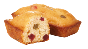 Pâtisseries aux fruits confits* (20%) et aux raisins secs au rhum (15%)
