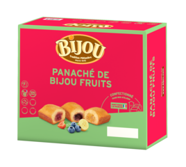 Pâtisseries fourrées (24%) aux fruits - 10 Bijou Banane aromatisées banane, 10 Bijou Fraise, 10 Bijou Myrtille aromatisé