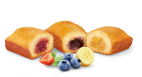 Pâtisseries fourrées (24%) aux fruits - 10 Bijou Banane aromatisées banane, 10 Bijou Fraise, 10 Bijou Myrtille aromatisé