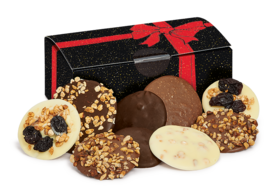 Un assortiment de tuiles et palets gourmands au chocolat présentés dans un joli ballotin. Une gourmandise à offrir ou à partager pour les fêtes de fin d'année !
